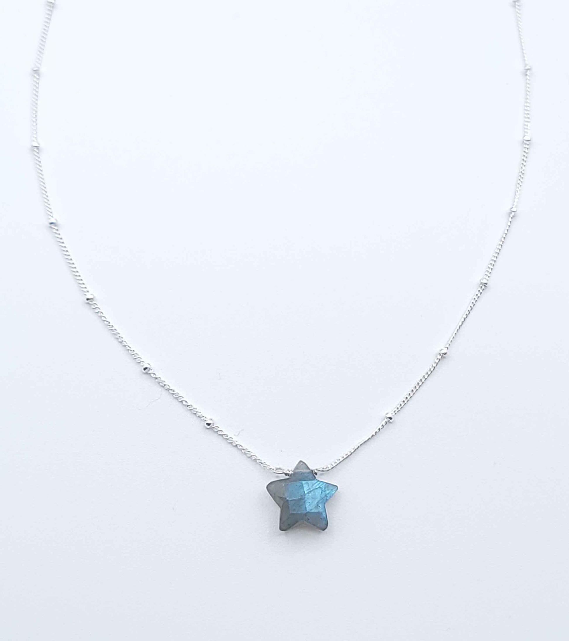 A faceted labradorite star pendant, designed to reflect clarity, intuition, and quiet guidance. Known as a stone of transformation, labradorite is often associated with strengthening intuition and supporting perseverance during times of change.